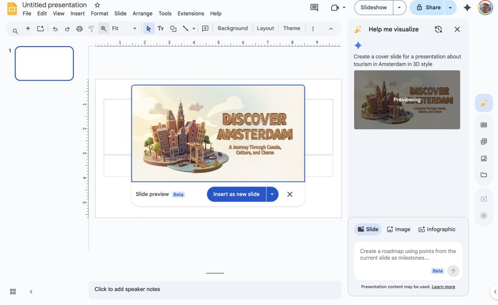 Google has started rolling out Nano Banana Pro features in Google Slides (like “Help me visualize” and “Beautify this slide”).