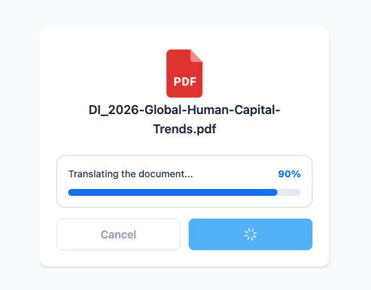 - Supports over major global languages with direct PDF upload (plus DOCX, PPTX, etc.), bulk processing for multiple files or languages at once, and Pro features like glossaries for consistent terminology.