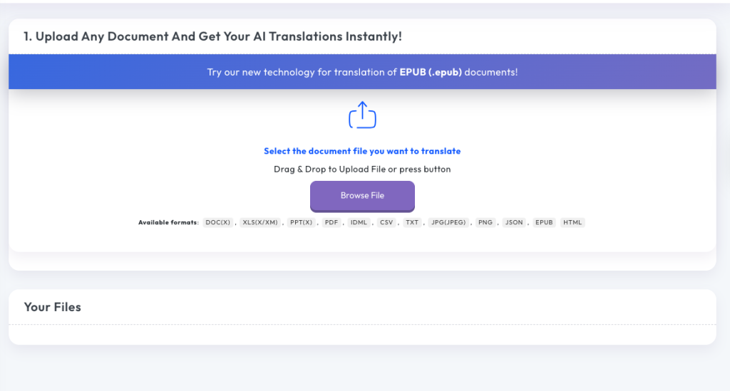 - Batch processing: Take advantage of the batch processing feature to translate multiple files at once.