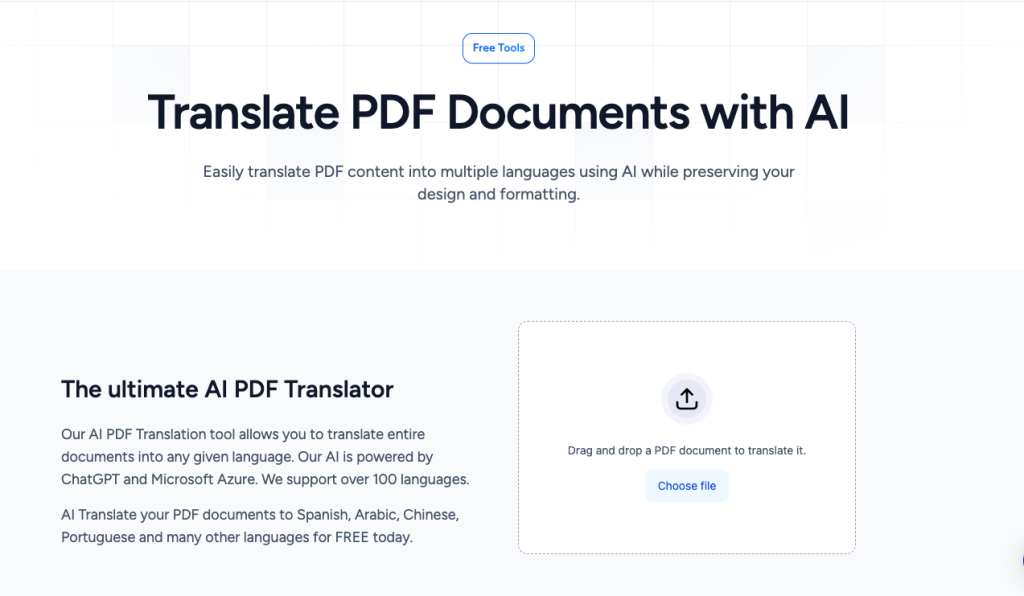 The service uses a combination of ChatGPT and Microsoft Azure translation/AI under the hood, which gives it high‑quality, nuanced translations compared to simple rule‑based tools. This is especially useful for business, educational, and professional documents where tone and nuance matter.